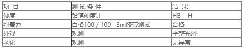 二、漆膜性能说明(干燥条件:常温放置≥30min或52℃烘烤10min)
